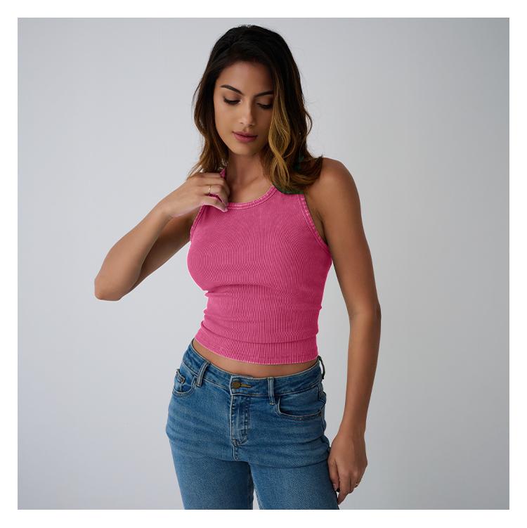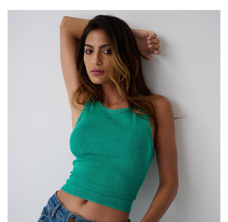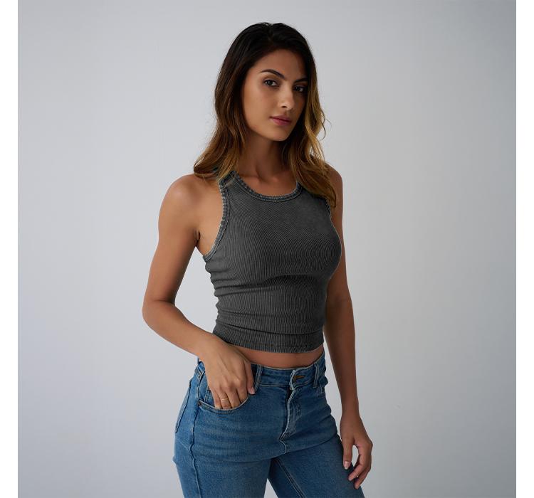 AUTOMET Washed Sleeveless Tank Top - Soft Breathable Slim-Fitting Casual Women'S Wear Basic Minimalist Design