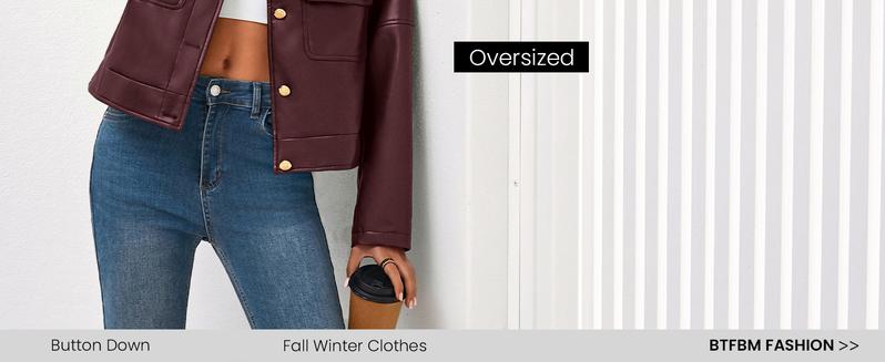 BTFBM Women'S Faux Leather Jacket Fall Winter Clothes 2025 Long Sleeve Button down Oversized Motorcycle Coats Outwear