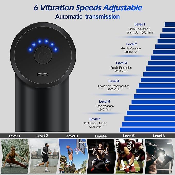 - 6 Adjustable Speeds: Can choose different speeds based on which muscle groups you are massaging.