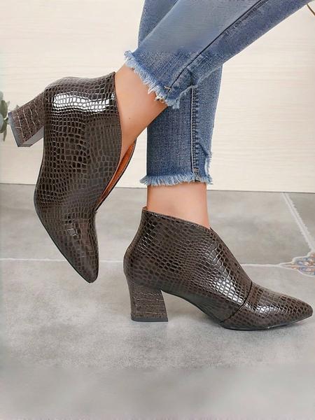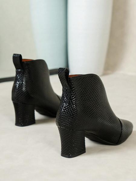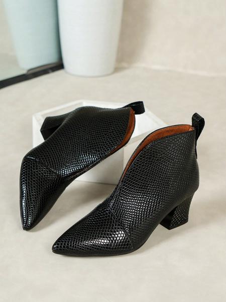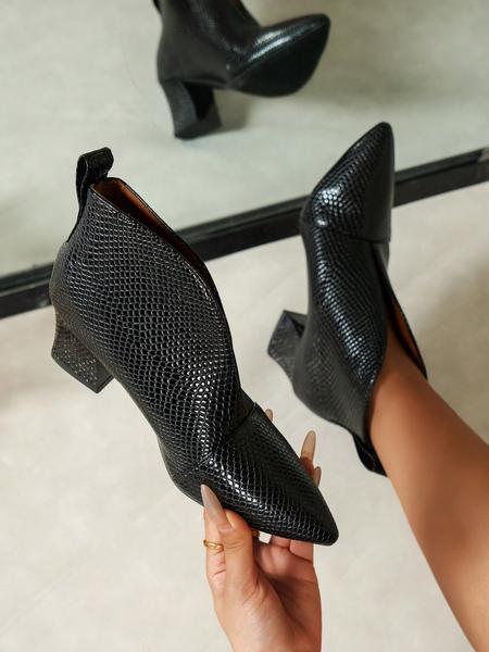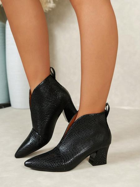 New Women'S High Heel Ankle Boots, Pointed Toe Slip-On Snakeskin Design, Minimalist Style Rubber Sole Shoes for All Seasons